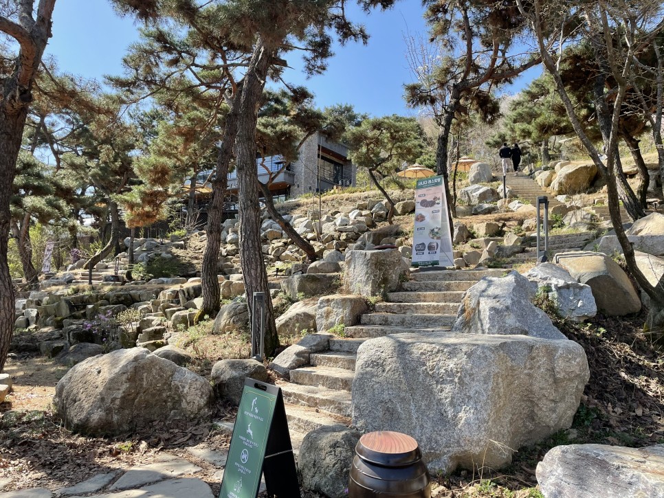주차장에서 카페로 올라가는 계단은 여러곳이 있습니다.